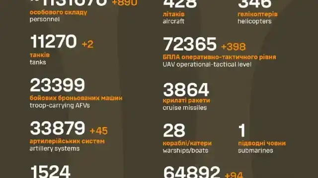 Загальні бойові втрати противника з 24.02.22 по 20.10.25 (орієнтовно)