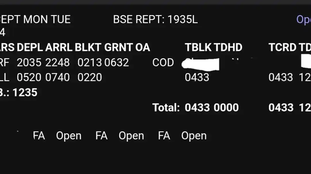 Take the example of this fun little overnight trip, you fly one leg to Norfolk, sit on the ground for five hours (six and a half, but half hour deplaning, one hour boarding) then fly back. Your flight time (paid time) is 4hrs33 and your time away from base (time on duty) is 12hrs35